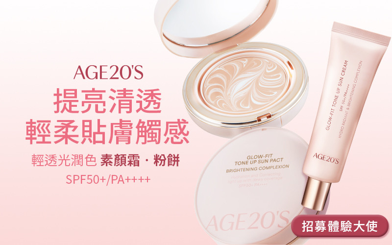 【NEW!AGE20'S粉嫩發光女神肌】輕透光素顏霜.素顏粉餅招募體驗大使